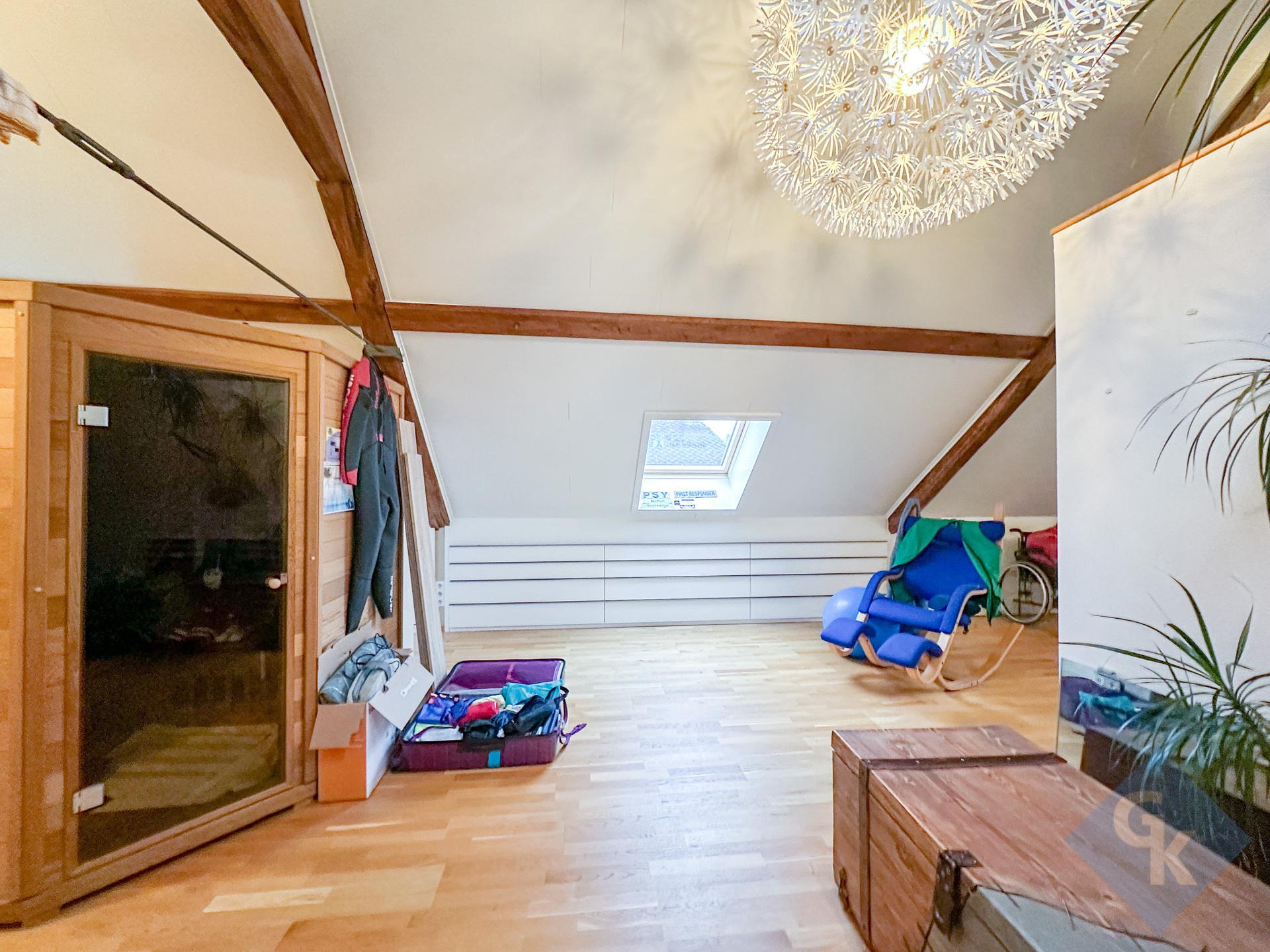 2e niveau: grande pièce ouverte rénovée en 2010 avec un chauffage au sol et comprenant une chambre à coucher, espace d'hobby / de sport / sauna, etc - salle de douche + WC.