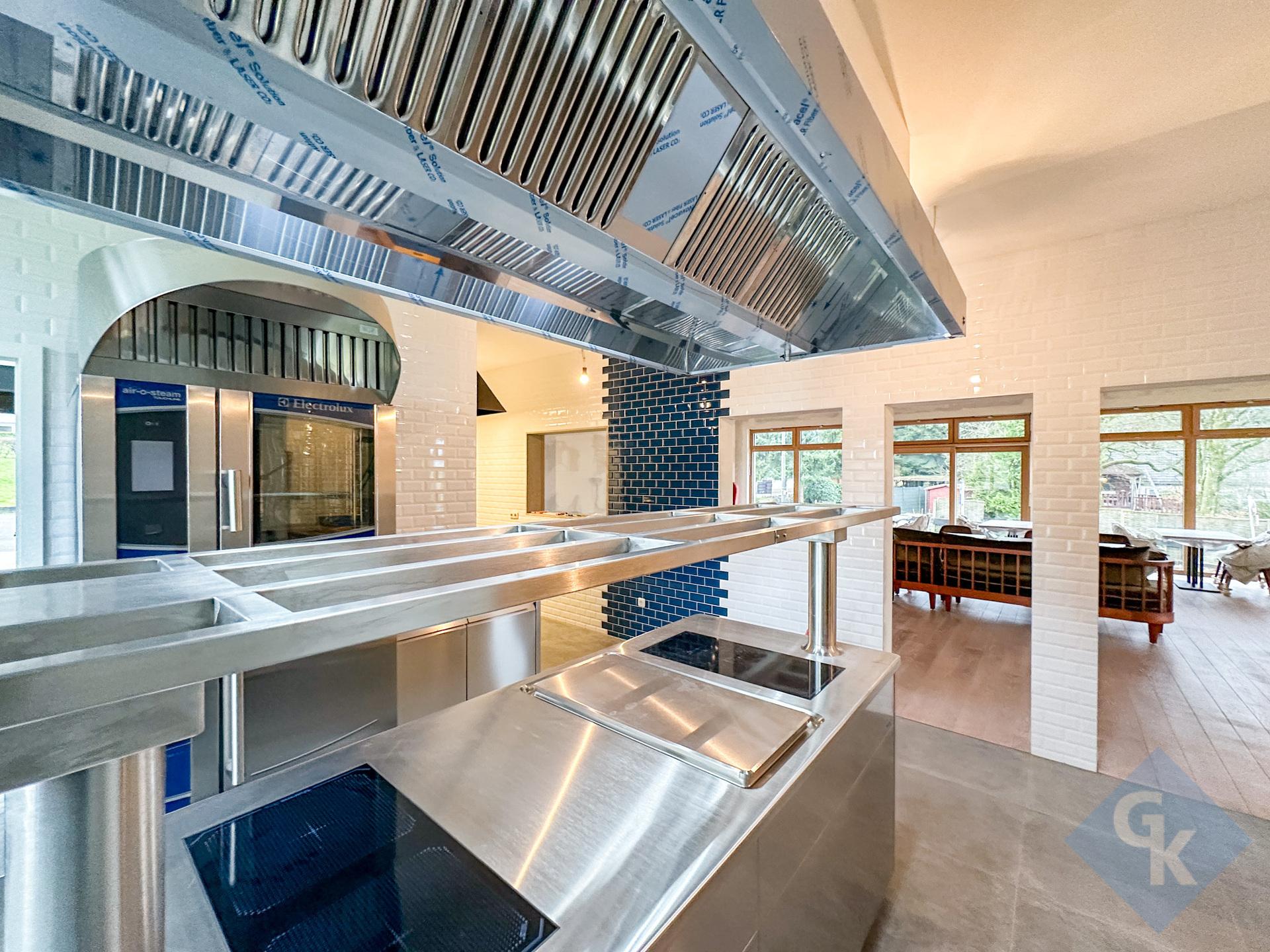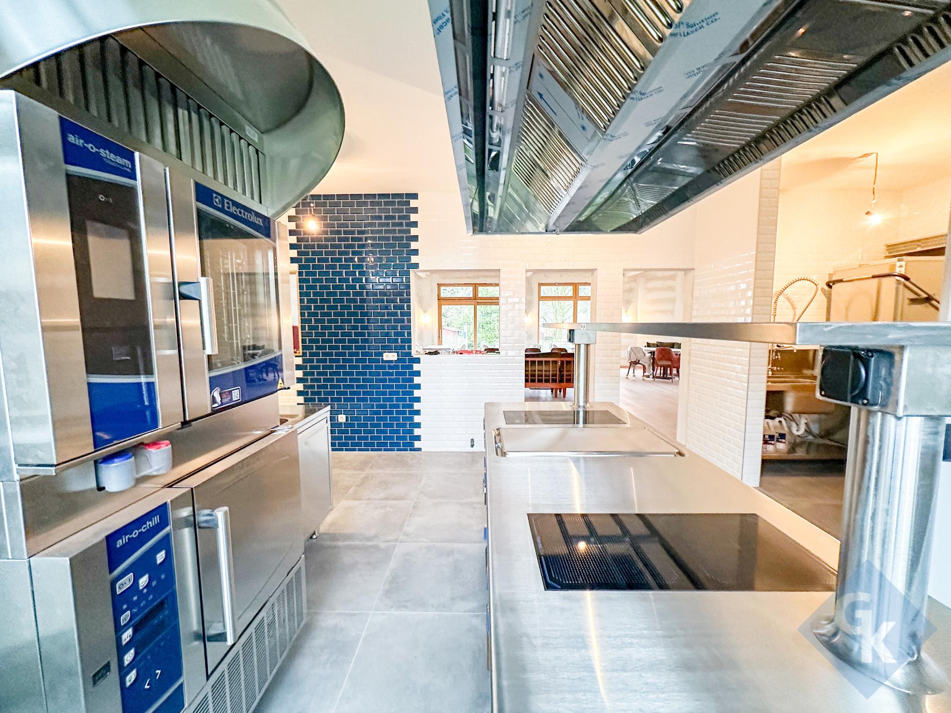 une laveuse à capot; un four mixte; une hotte avec condensateur; un fourneau 'Thermaline'; une hotte groupe d'extraction; une chambre froide et un four à bois.