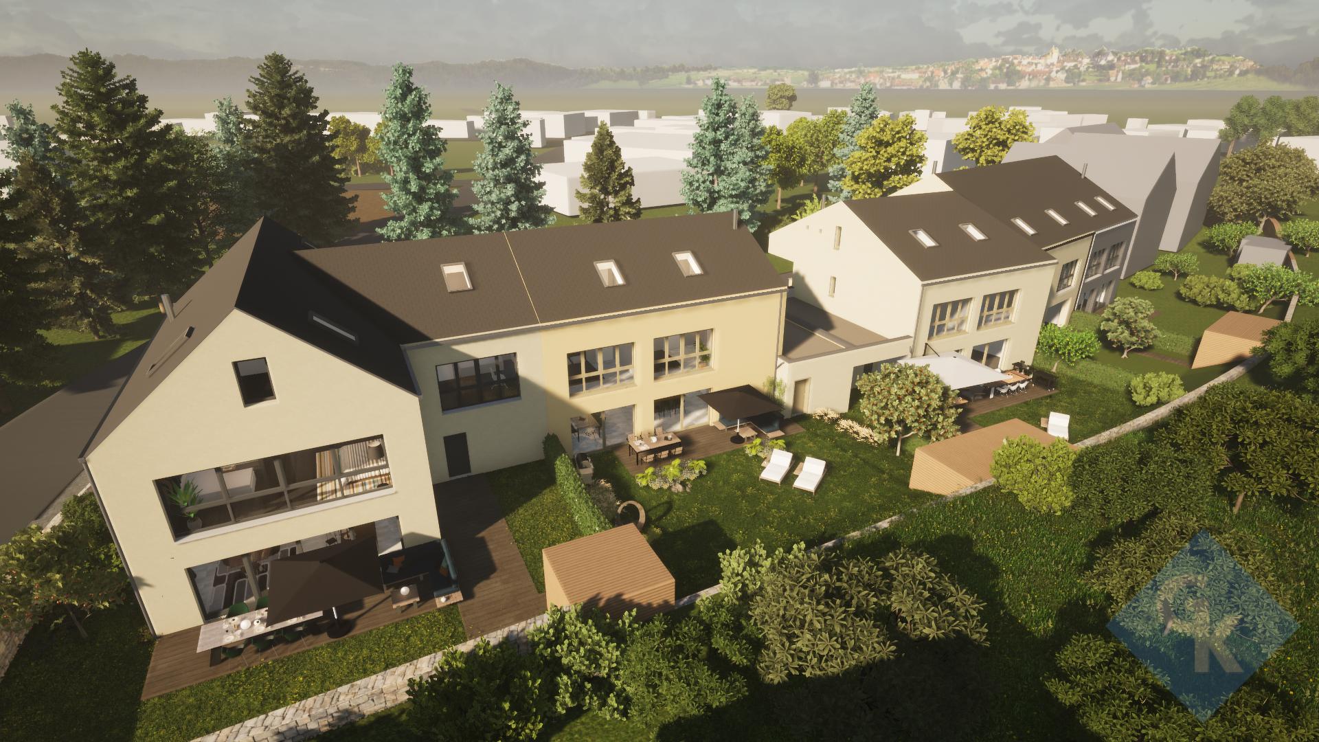 Nouveau projet de 6 maisons spacieuses et lumineuses avec 3 à 4 chambres à coucher et 2 salles de bains ; situation calme dans la Rue Lannebaach à Osweiler ; terrasses et jardins orientés plein sud, accessibles par des grandes baies vitrées coulissantes ; greniers aménageables avec raccordements en attente ; prix « clé en main » non soumis à indexation ; garantie et assurance décennale comprise !