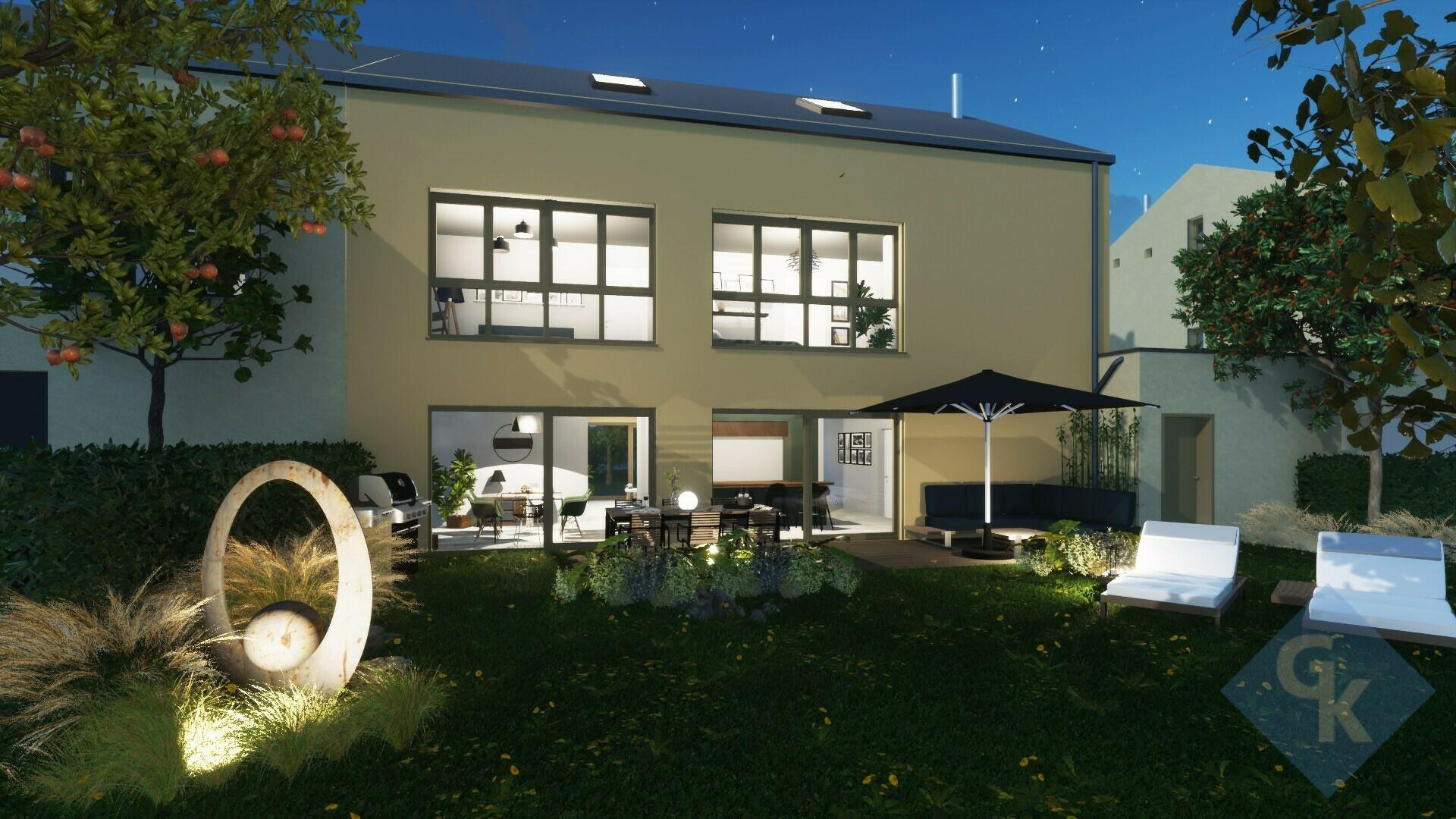 Aspects techniques : classe énergétique AA, pompe à chaleur air/eau, chauffage au sol avec thermostats individuels, VMC avec récupération de chaleur, équipement électrique et sanitaire attrayant, fenêtres en alu avec triple vitrage et volets roulants électriques, porte d'entrée en alu, choix de carrelage moderne, etc.