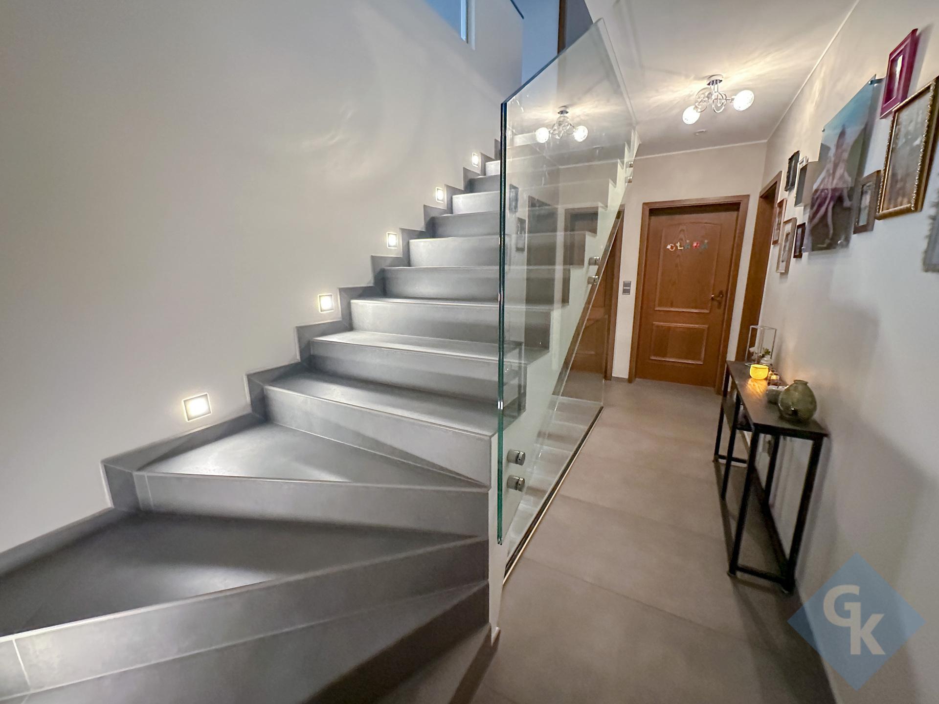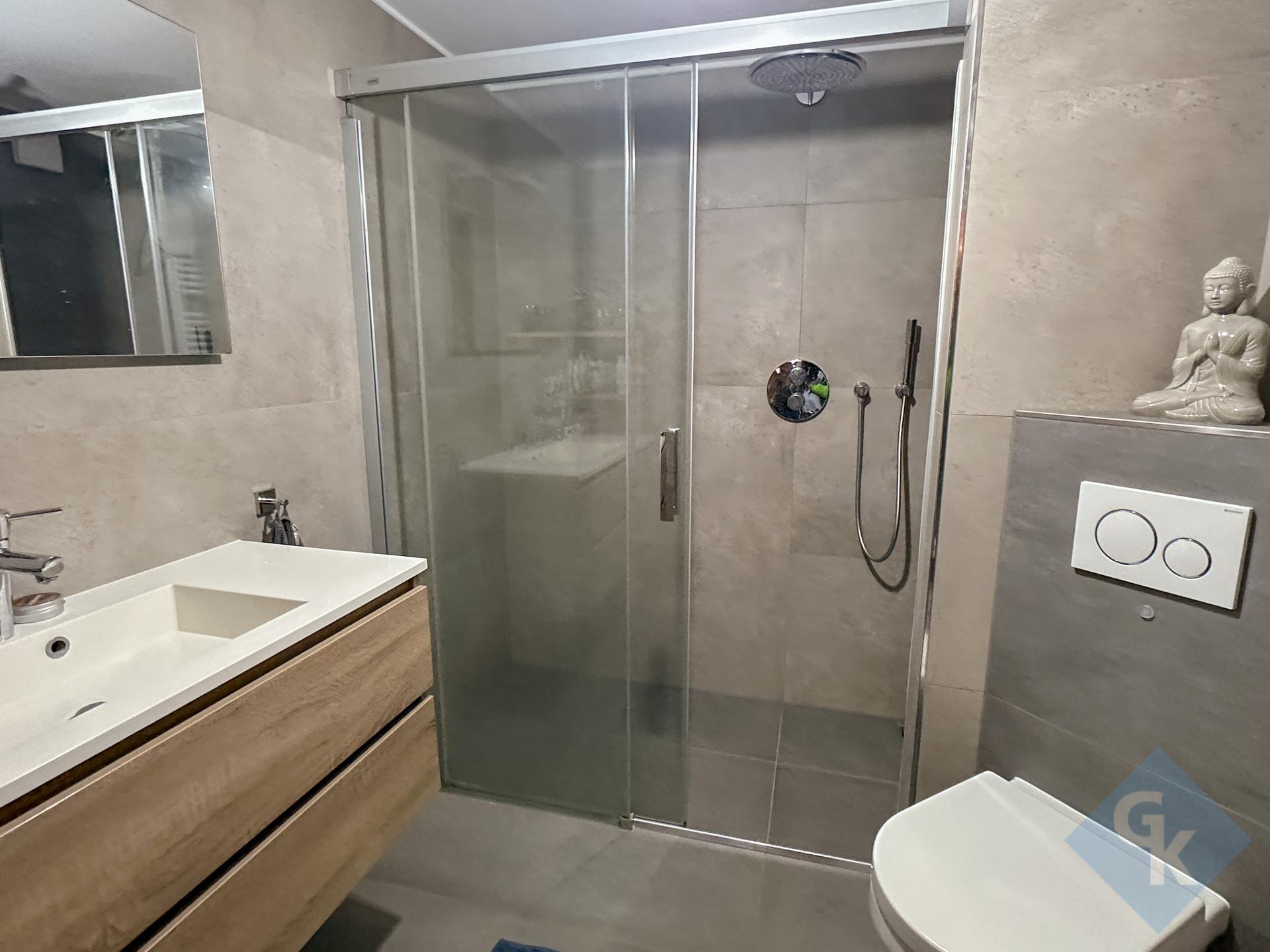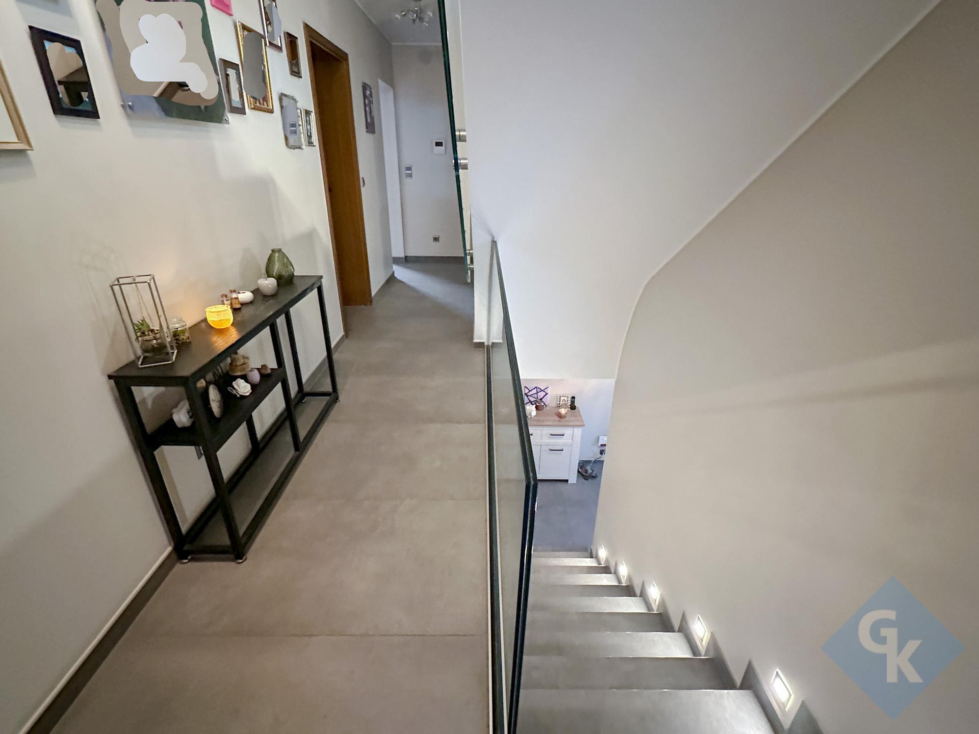 - Sous-sol : hall d'entrée (9,48 m²) ; garage pour une voiture (33,89 m²) ; chaufferie Buderus (9,99 m²) ; salle de douche avec WC (5,33 m²) ; cave (22,19 m²); bureau (9.76 m²).