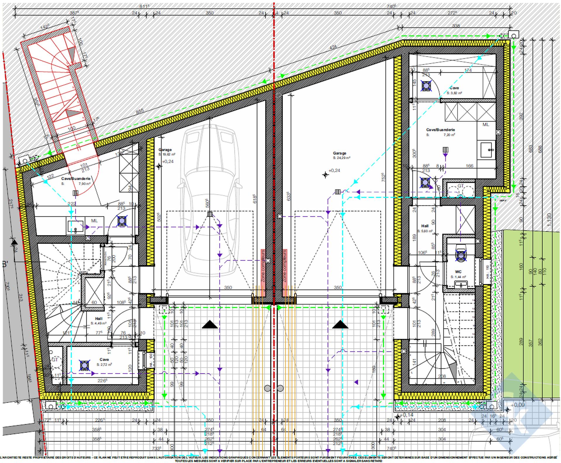 - Rez-de-chaussée : hall d'entrée avec espace vestiaire, WC séparé, cave et buanderie