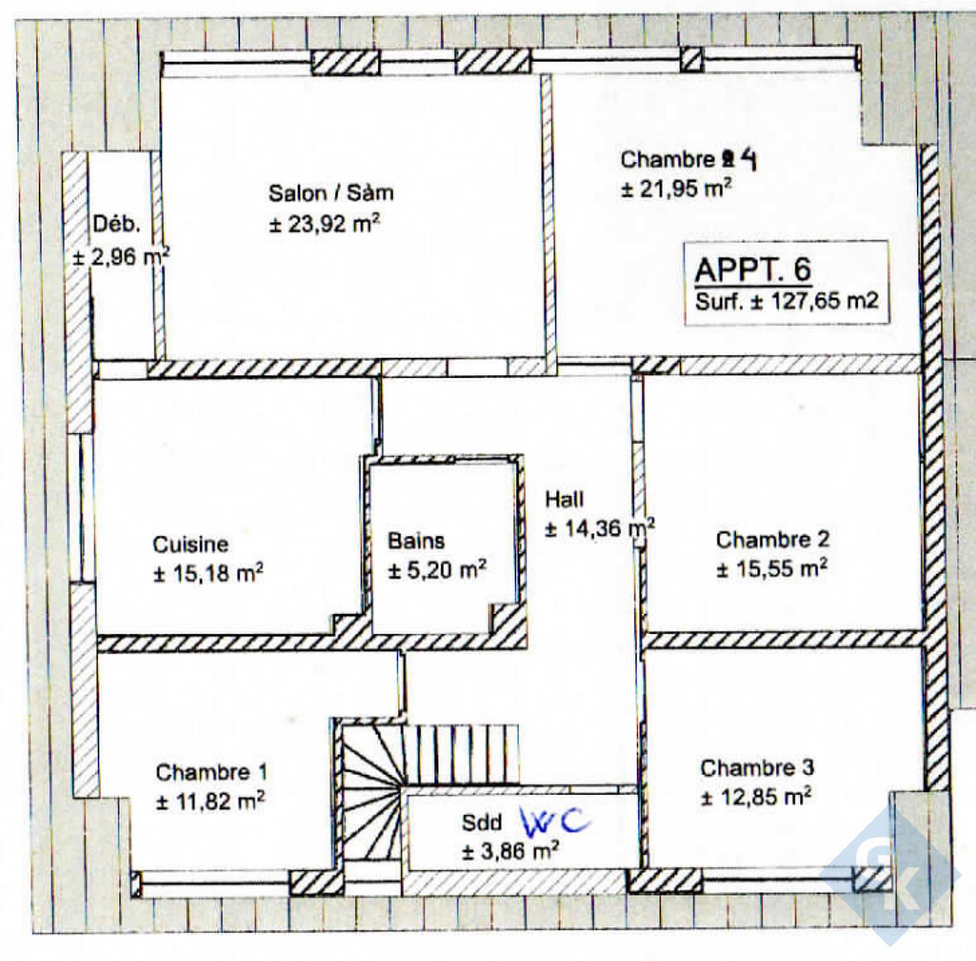 Composition de l'appartement d'une surface cadastrale de 131,43 m² :