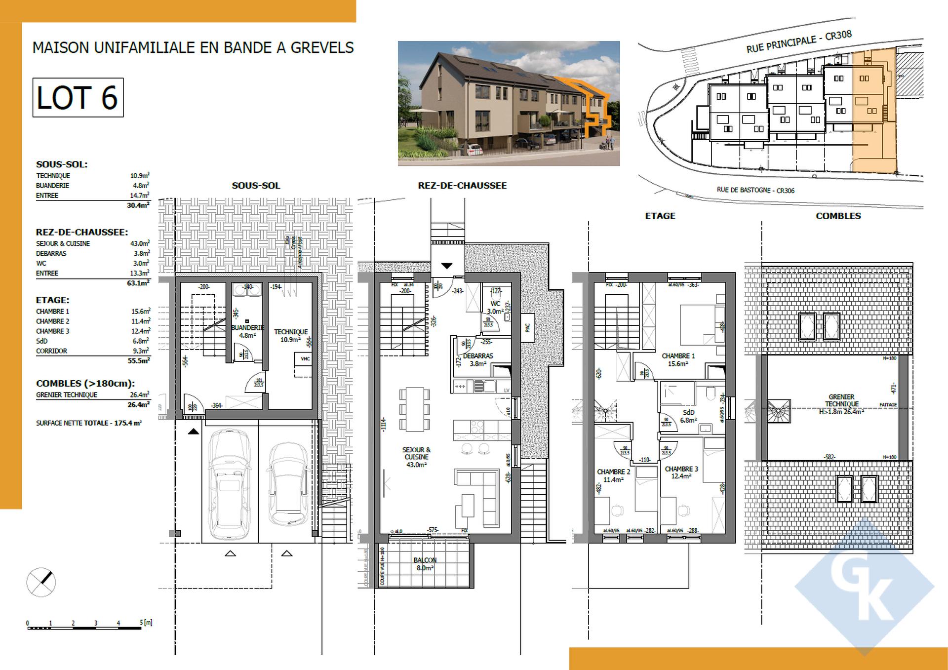 Composition du lot n° 6 d'une surface nette totale de 175,4 m² :