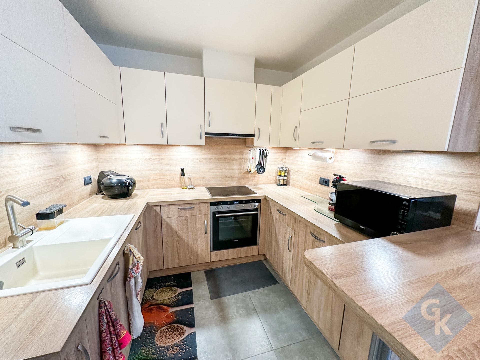 - Rez-de-chaussée : hall d'entrée (17,34 m²) - living / salle à manger (38,99 m²) - cuisine équipée (13,68 m²) - WC séparé (1,62 m²) - chambre 1 (8,38 m²) - chambre 2 (9,37 m²) - chambre 3 (17,14 m²) - salle de bains avec WC (6,48 m²) - débarras (5,76 m²) - véranda (16,48 m²) - terrasse couverte (9,11 m²).