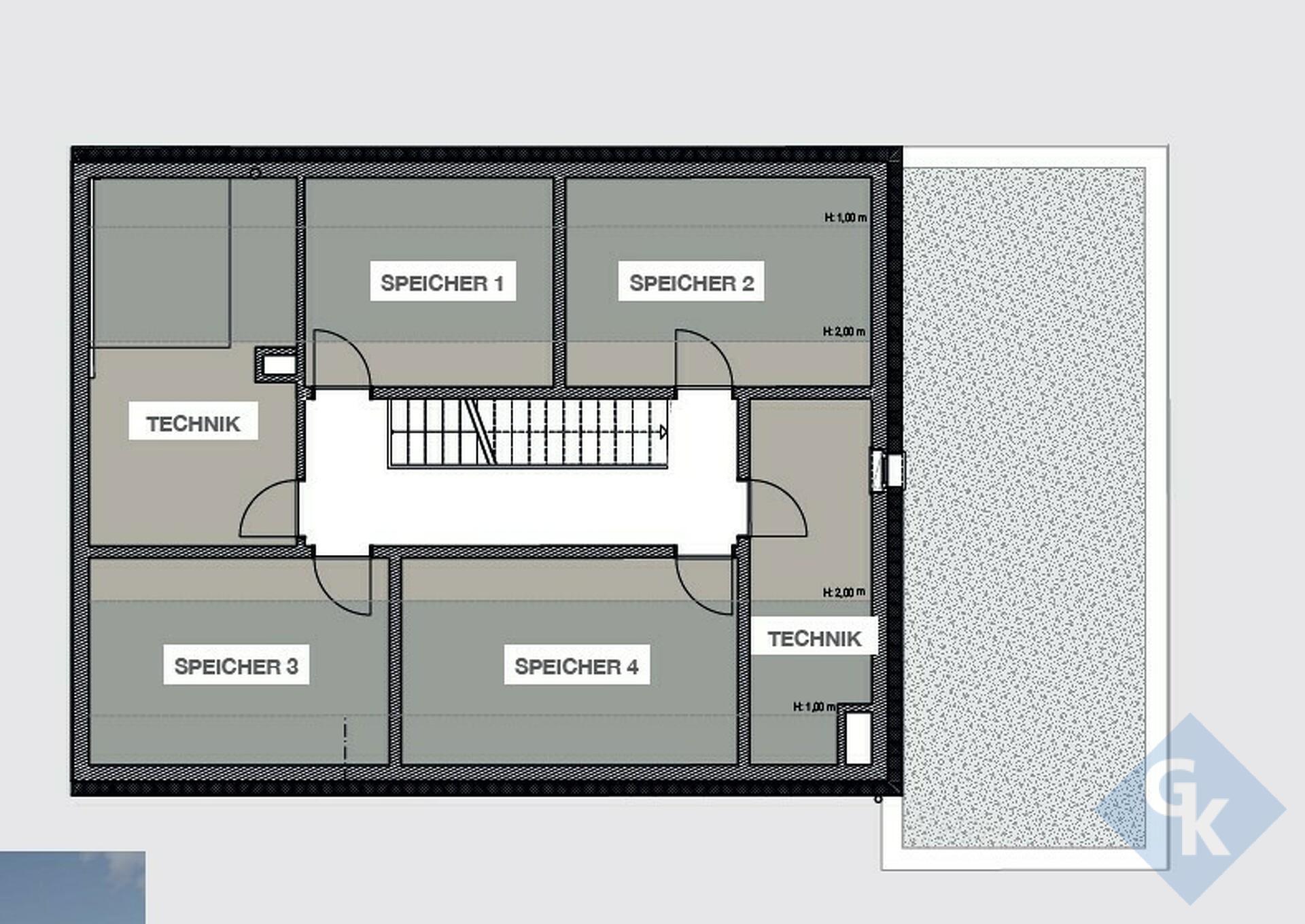 - Aux combles : couloir – 6 pièces à aménager