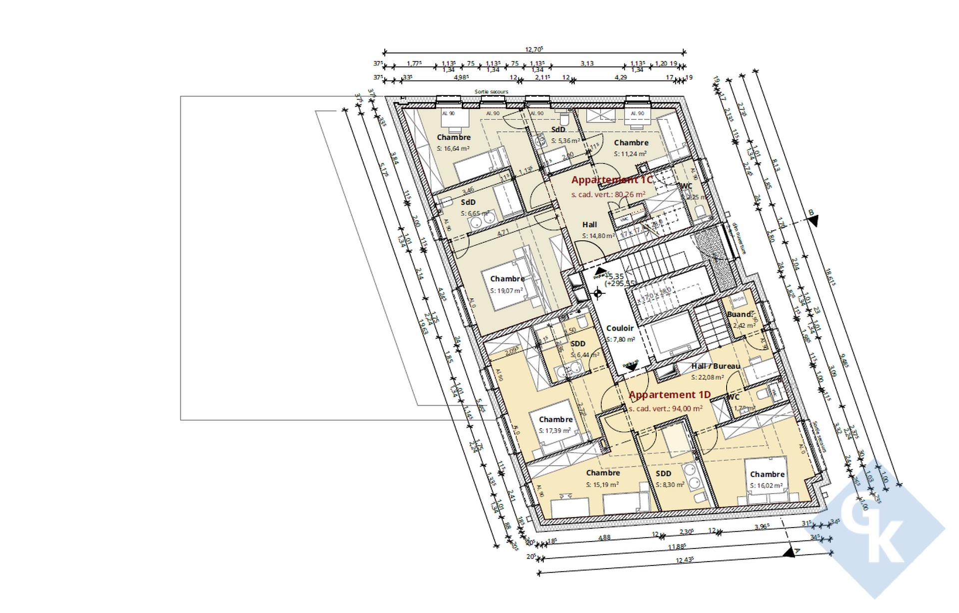 Les superficies varient de 51 m² à 128 m², tous les logements bénéficiant d'un balcon ou d'une terrasse ainsi que d'une cave privative.