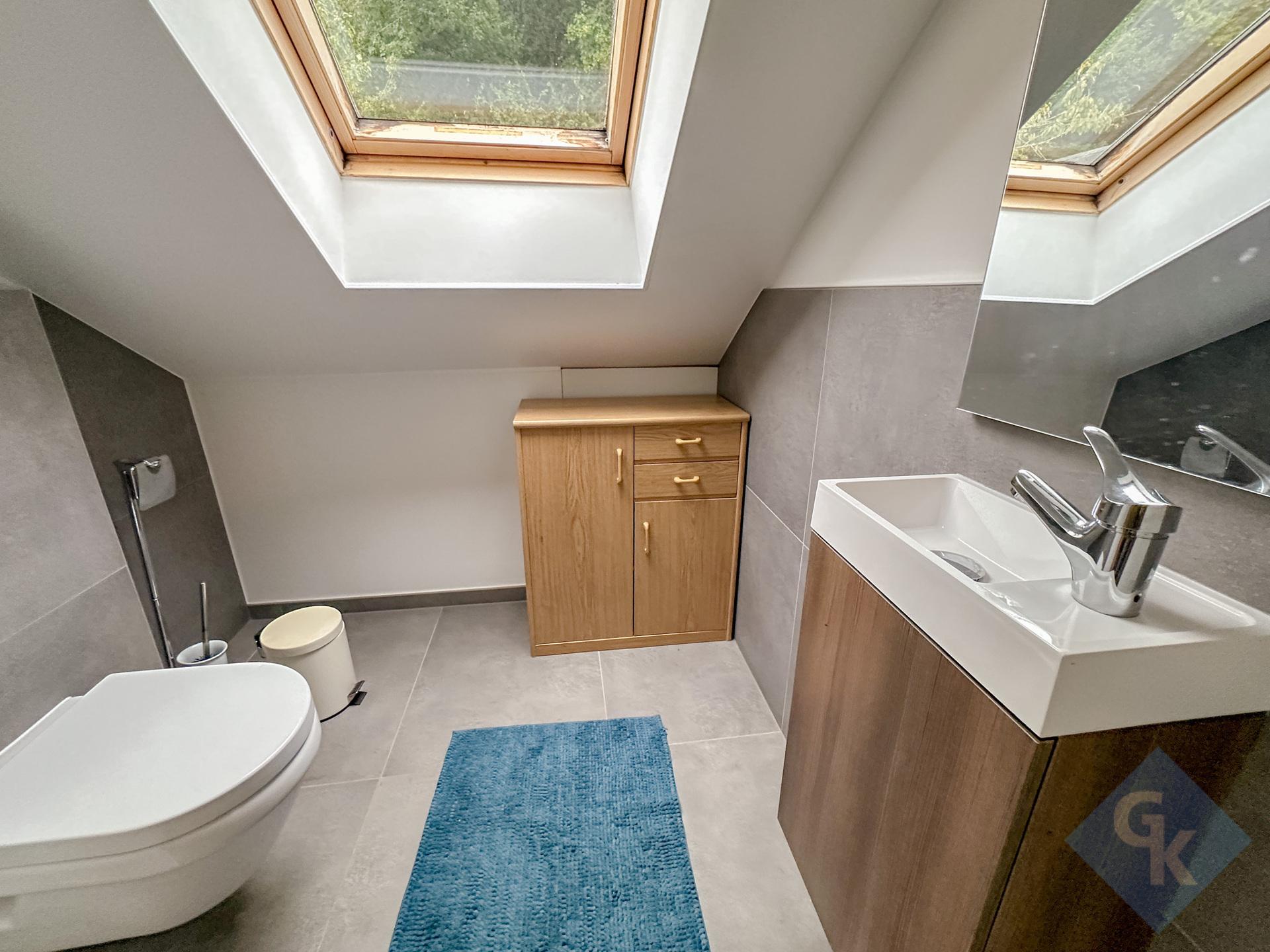 - Sous-sol : hall d'entrée (9,48 m²) ; garage pour une voiture (33,89 m²) ; chaufferie Buderus (9,99 m²) ; salle de douche avec WC (5,33 m²) ; cave (22,19 m²); bureau (9.76 m²).