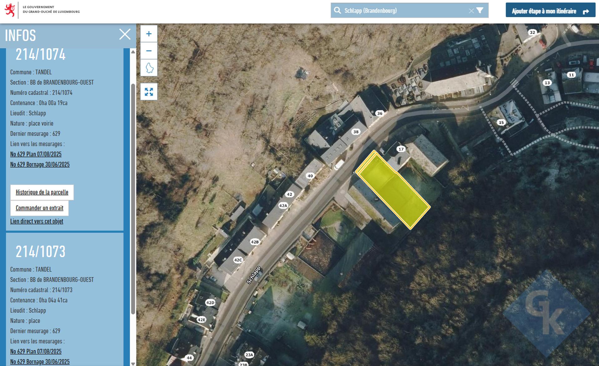 Une ancienne construction (sous-sol / reste d'une grange) est encore présente sur le terrain et devra être démolie avant tout nouveau projet.