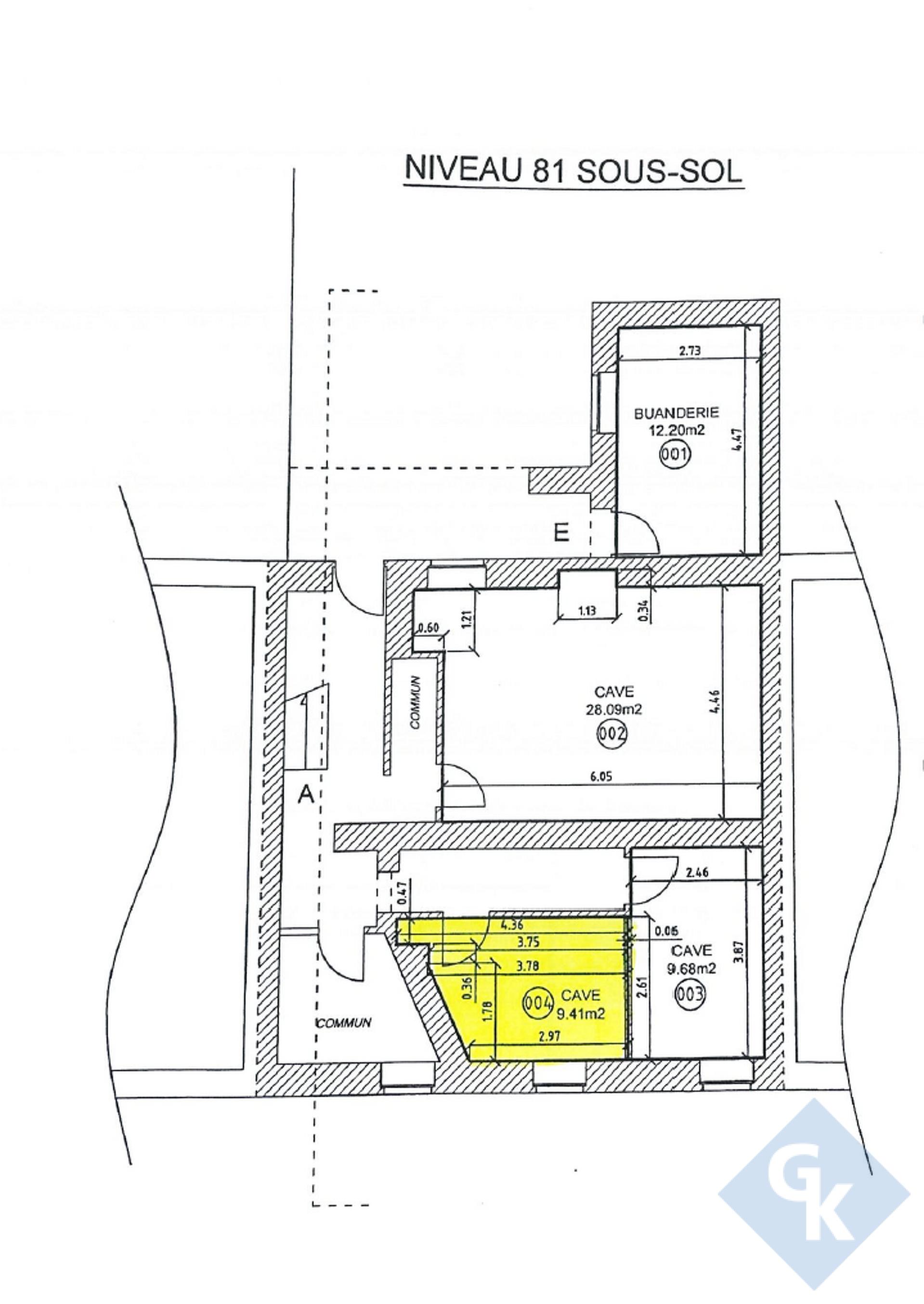 * cave privative de (9.41 m²) au sous-sol