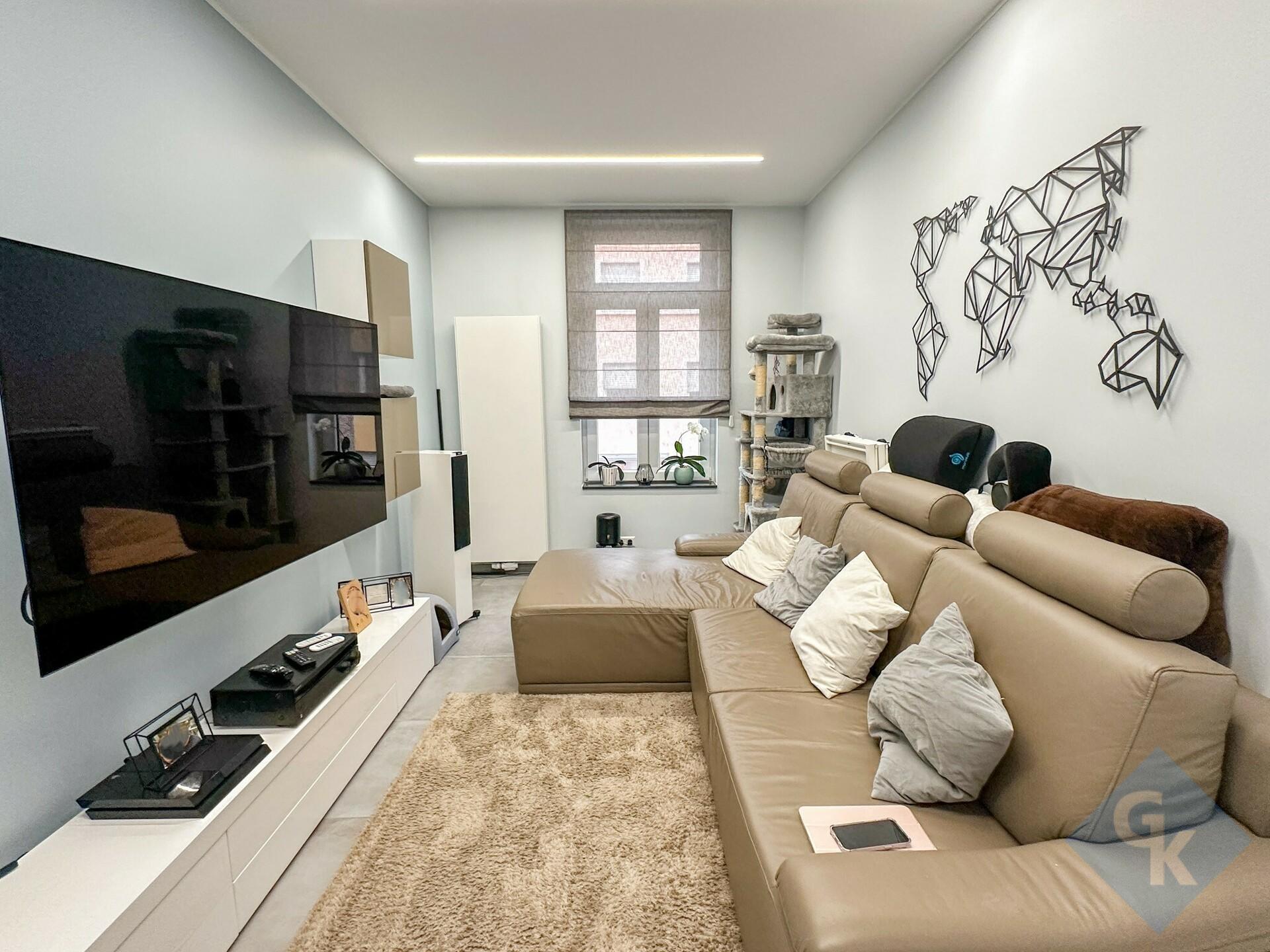 Bel appartement à 2 chambres (1er étage) rénové à partir de 2017, situé dans une petite résidence à 4 unités. Garage fermé pour 1 voiture et cave de 9.41 m² compris.