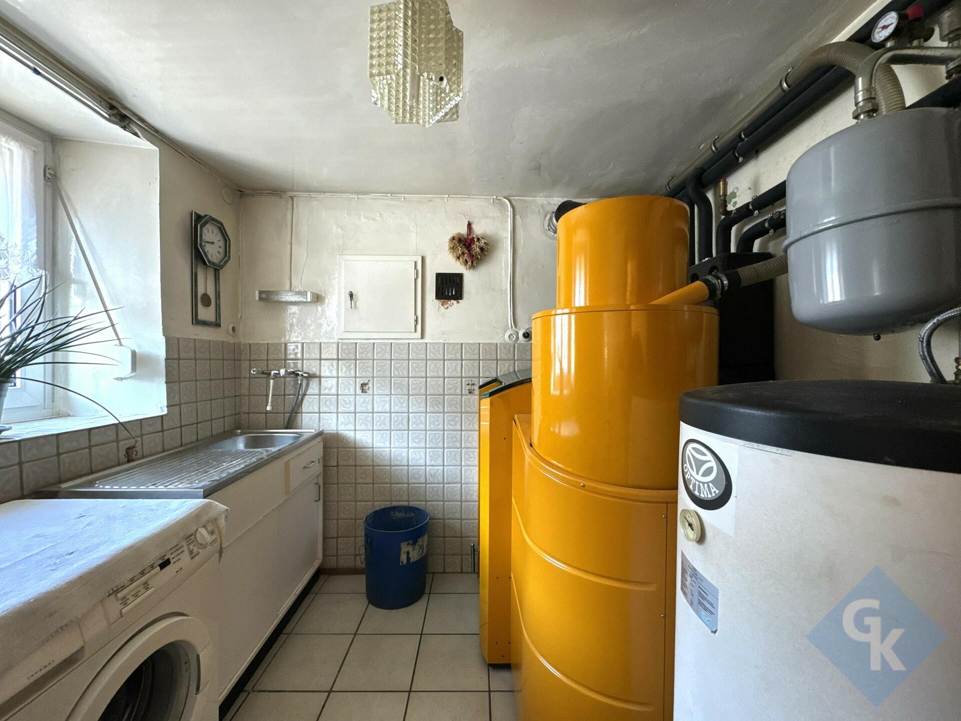 Aspects techniques : chaudière à pellets de 2003, radiateurs, fenêtres en PVC double vitrage, volets roulants, toiture en ardoises, cuisine équipée installée en 2017, salle de bains rénovée, etc.