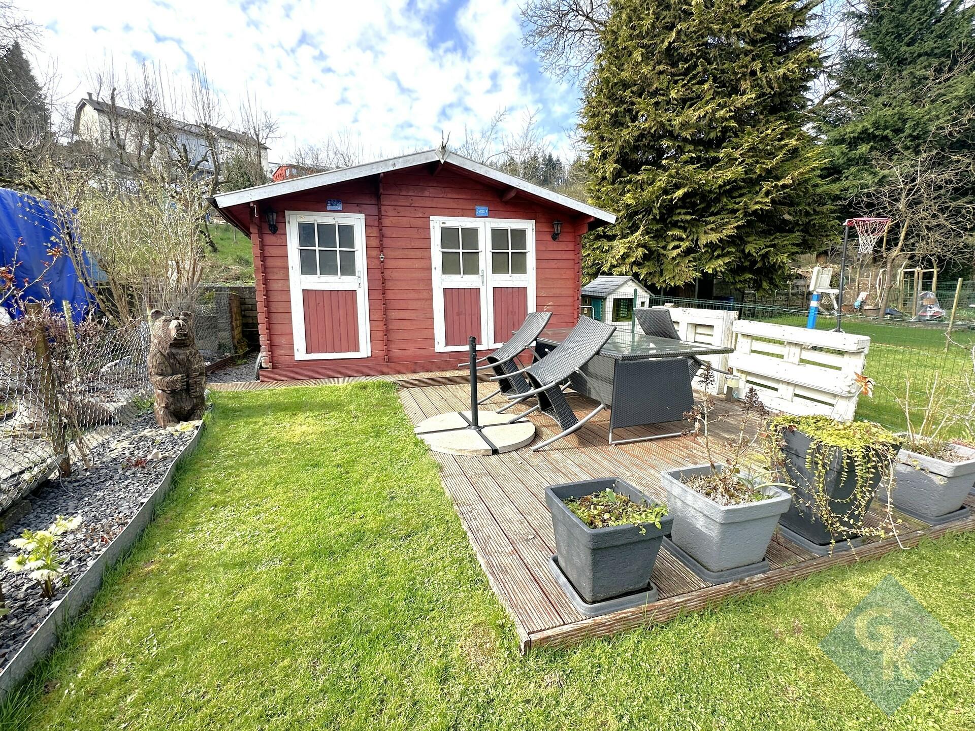 R-d-ch: hall (7.54 m²) - salle à manger (10.77 m²) - living (13.41 m²) - cuisine équipée séparée (10.53 m²) avec accès vers les terrasses - WC séparé - 2 terrasses (40 m²); terrasse maison de jardin (14 m²) - maison jardin (12.24 m²).