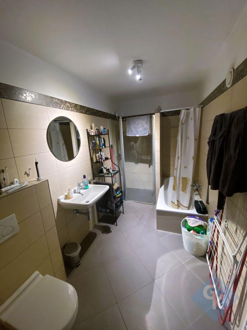 Hall d'entrée (8m²), cuisine équipée et ouverte (5.85m² ); living ( 25.31m² ) avec accès au balcon (2m²); salle de bain (7m²) avec baignoire, douche et WC; 1 chambre à coucher (16.21m²).