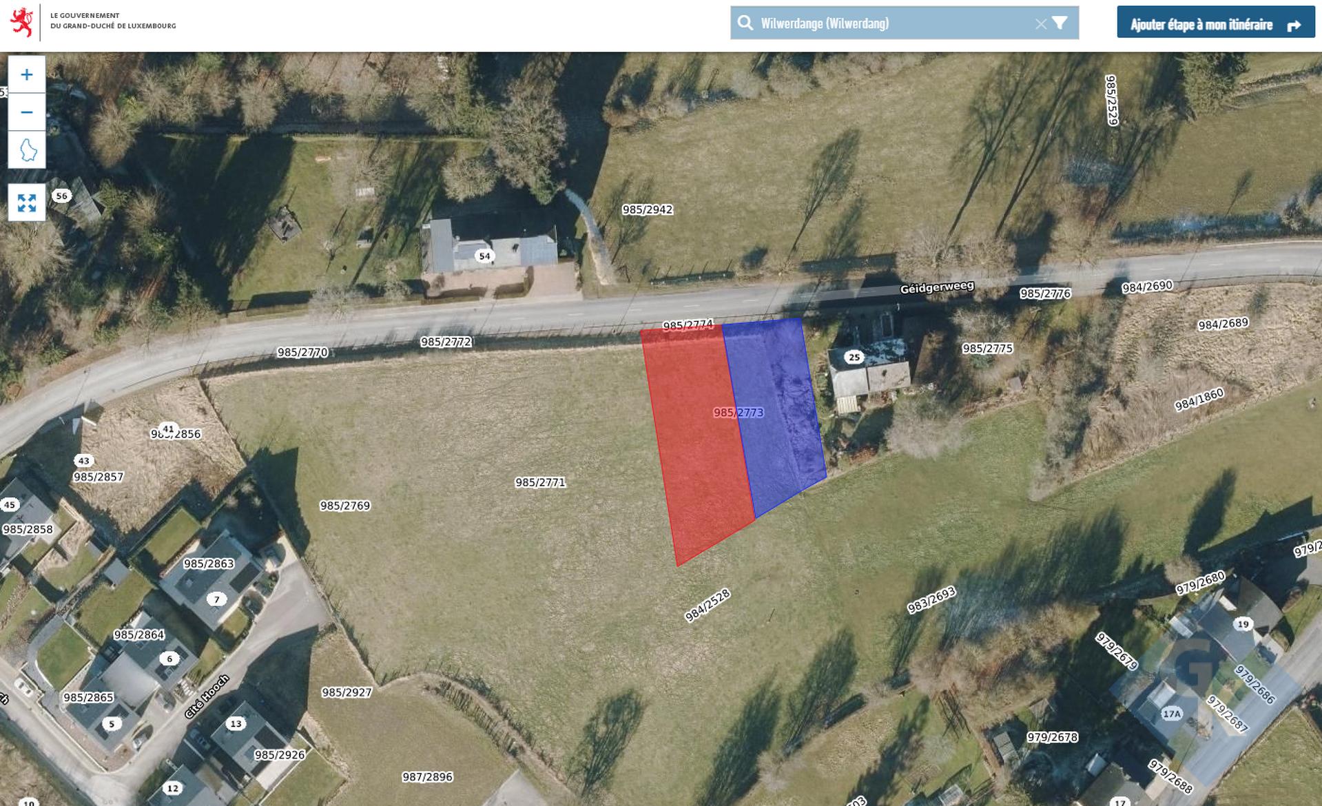 Possibilité également d'acquérir la totalité de la parcelle initiale de 13,14 ares pour un prix de 496.000 € (soit 37.750 € / are)
