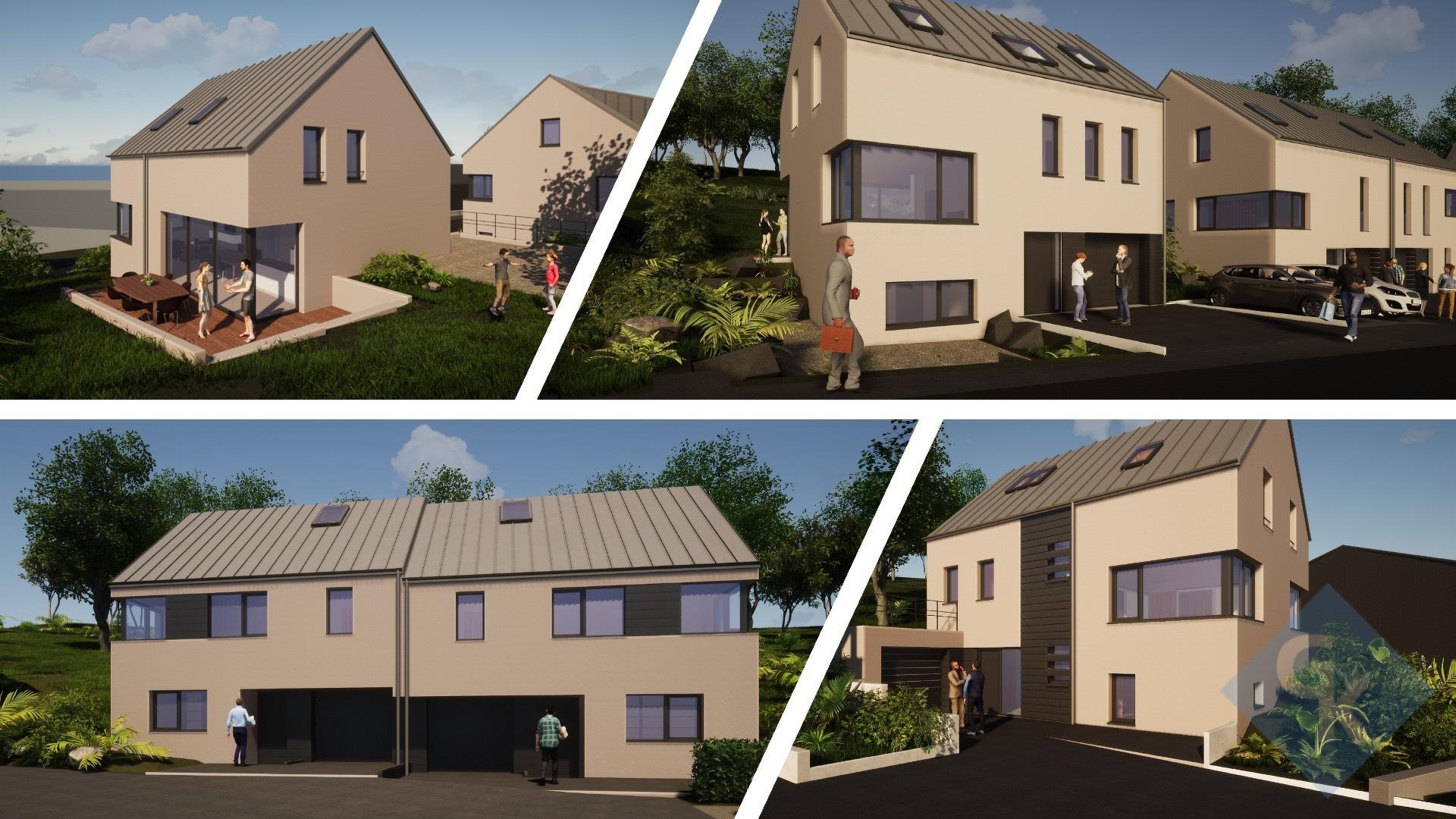 dont nous vous présentons 2 maisons à 3-4 chambres à coucher et construites par un entrepreneur de renommé. Double garage et grande terrasse de 27.68 m². Matériaux de qualité ‘haut de gamme'. Proche de toutes les commodités diverses de la vie courante. A 6 km de Diekirch, voir 6.6 km de Vianden.