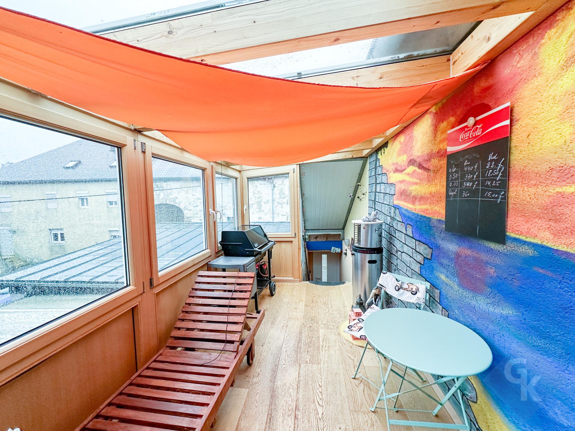 2e niveau: grande pièce ouverte rénovée en 2010 avec un chauffage au sol et comprenant une chambre à coucher, espace d'hobby / de sport / sauna, etc - salle de douche + WC.