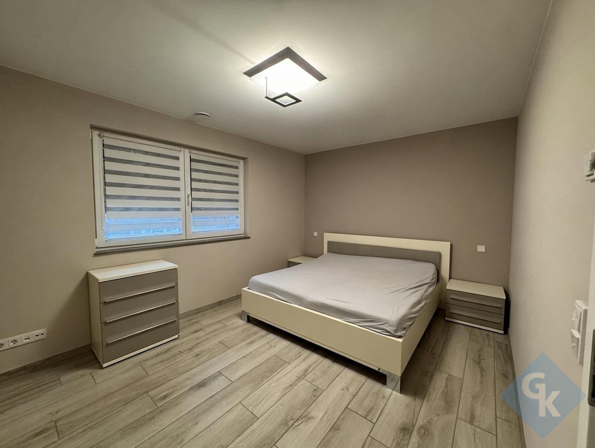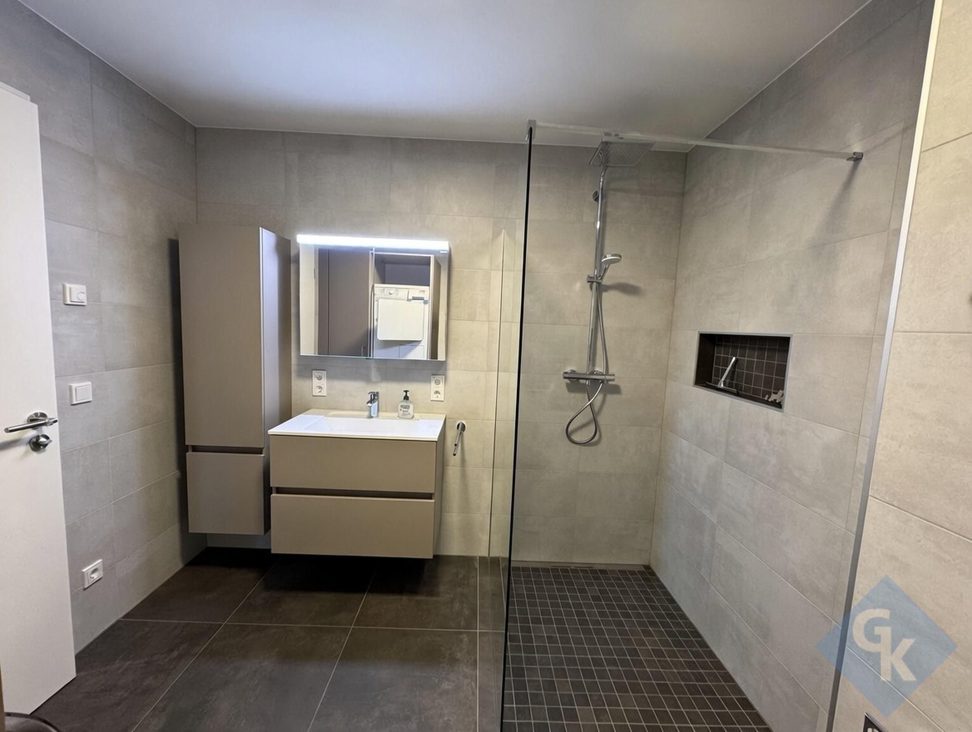 La chambre offre une atmosphère agréable et reposante, tandis que la salle de douche moderne et entièrement équipée complète parfaitement l'agencement de l'appartement.